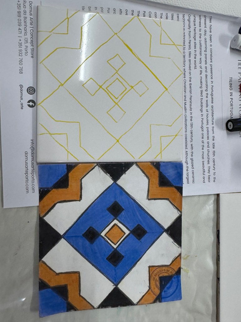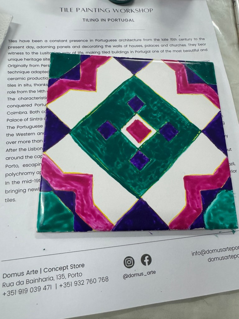 From there it was a short trek to a tile painting class. I found I got WAY TO invested in the painting and enjoyed and was frustrated by it at the same time – I enjoyed the painting and was frustrated that I was not good at it LOL.